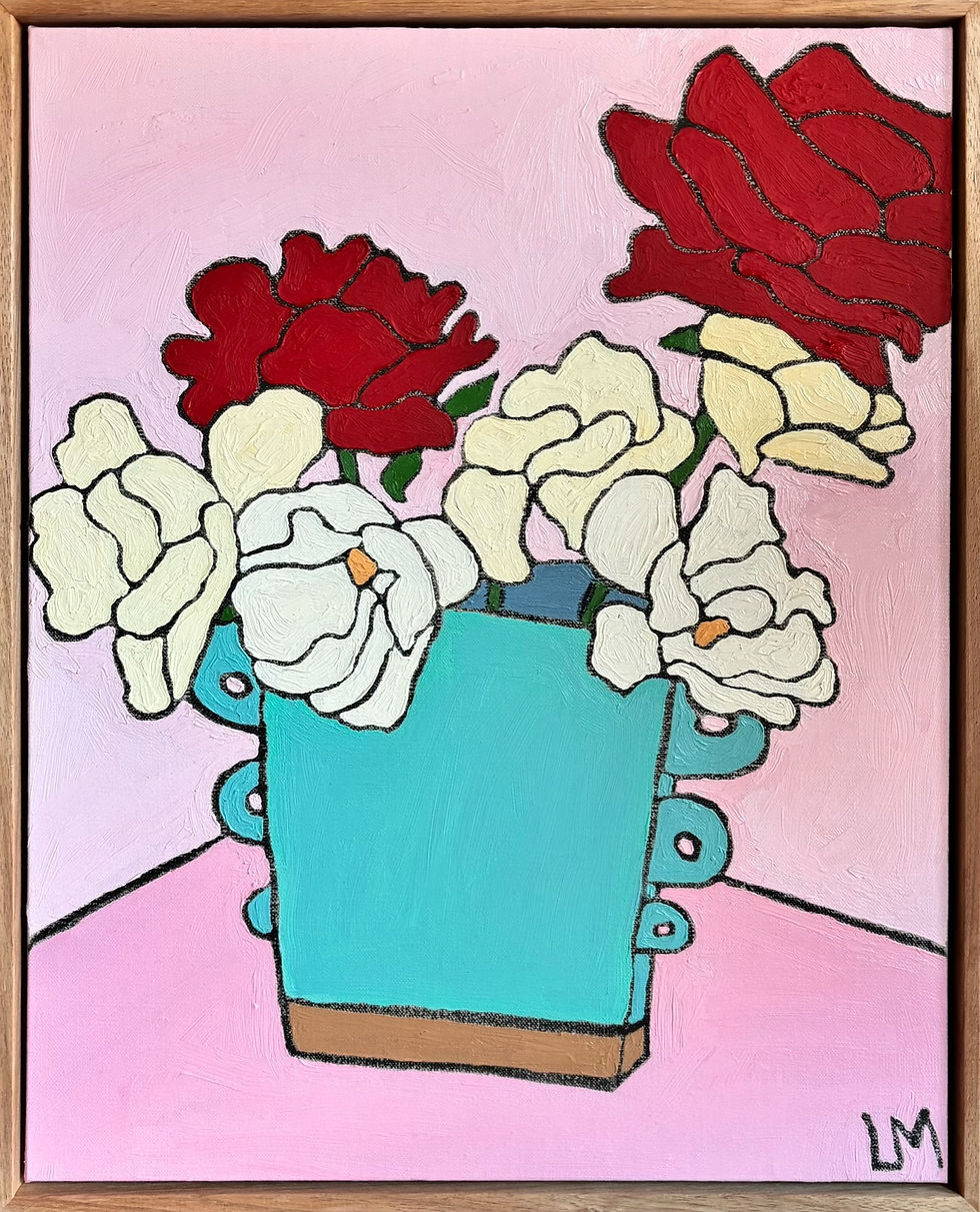 "My work explores domesticity in a queer household - the quiet, everyday moments that define intimacy and home. Using a palette of bright colours that blur the lines between the traditionally masculine and the feminine, I challenge rigid definitions and celebrate a space that is both and neither. Through colour, texture, and form, I aim to capture the innate beauty of ordinary life and the complex nature of identity."